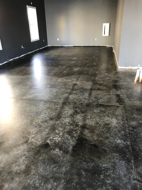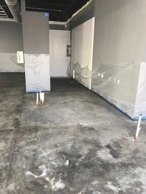 The project entailed the installation of a 1,000 sq ft, 7 color epoxy floor coating. Prep work included diamond grinding and shot blasting followed by epoxy coating. The topcoat was a high-ware Satin finish urethane.
